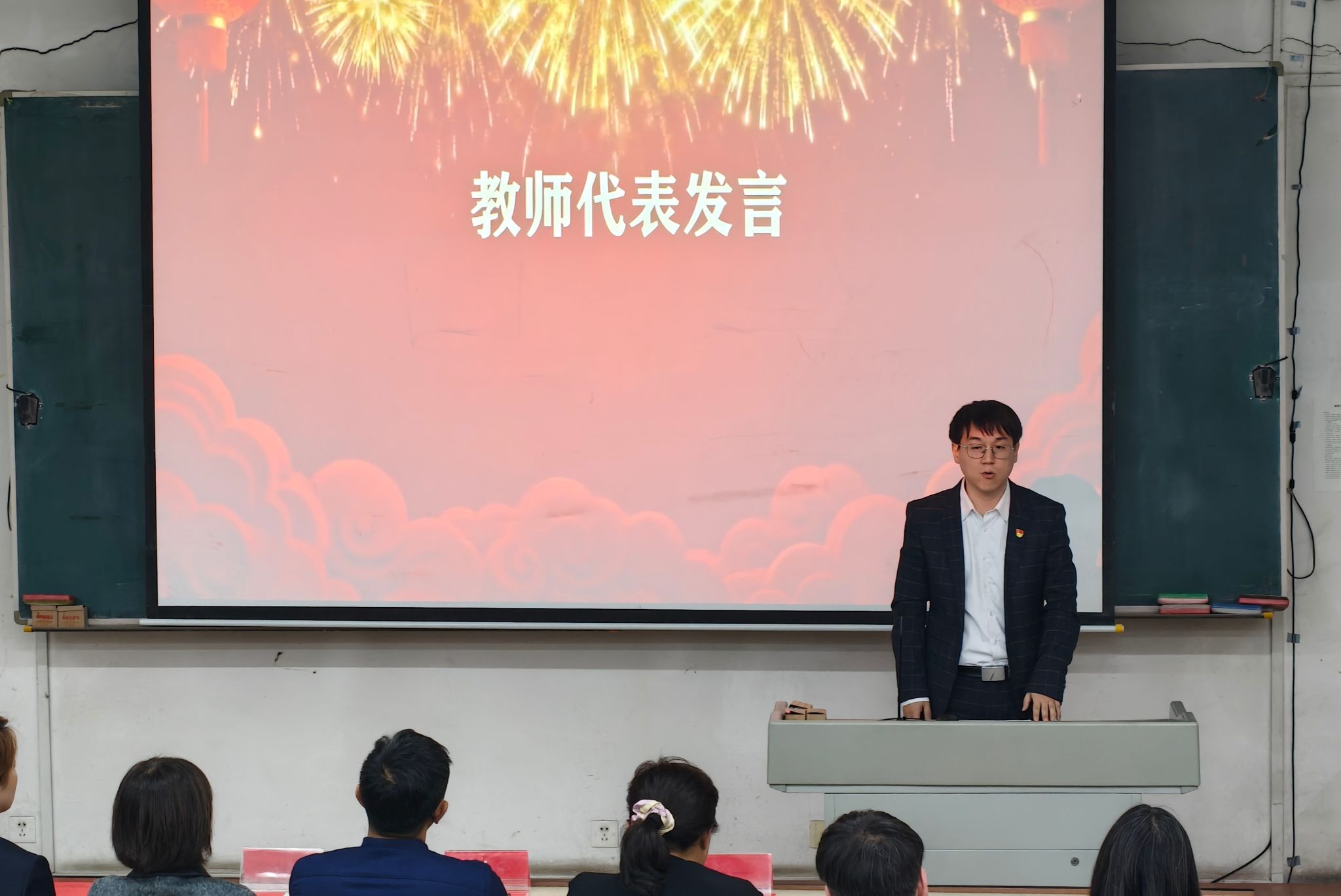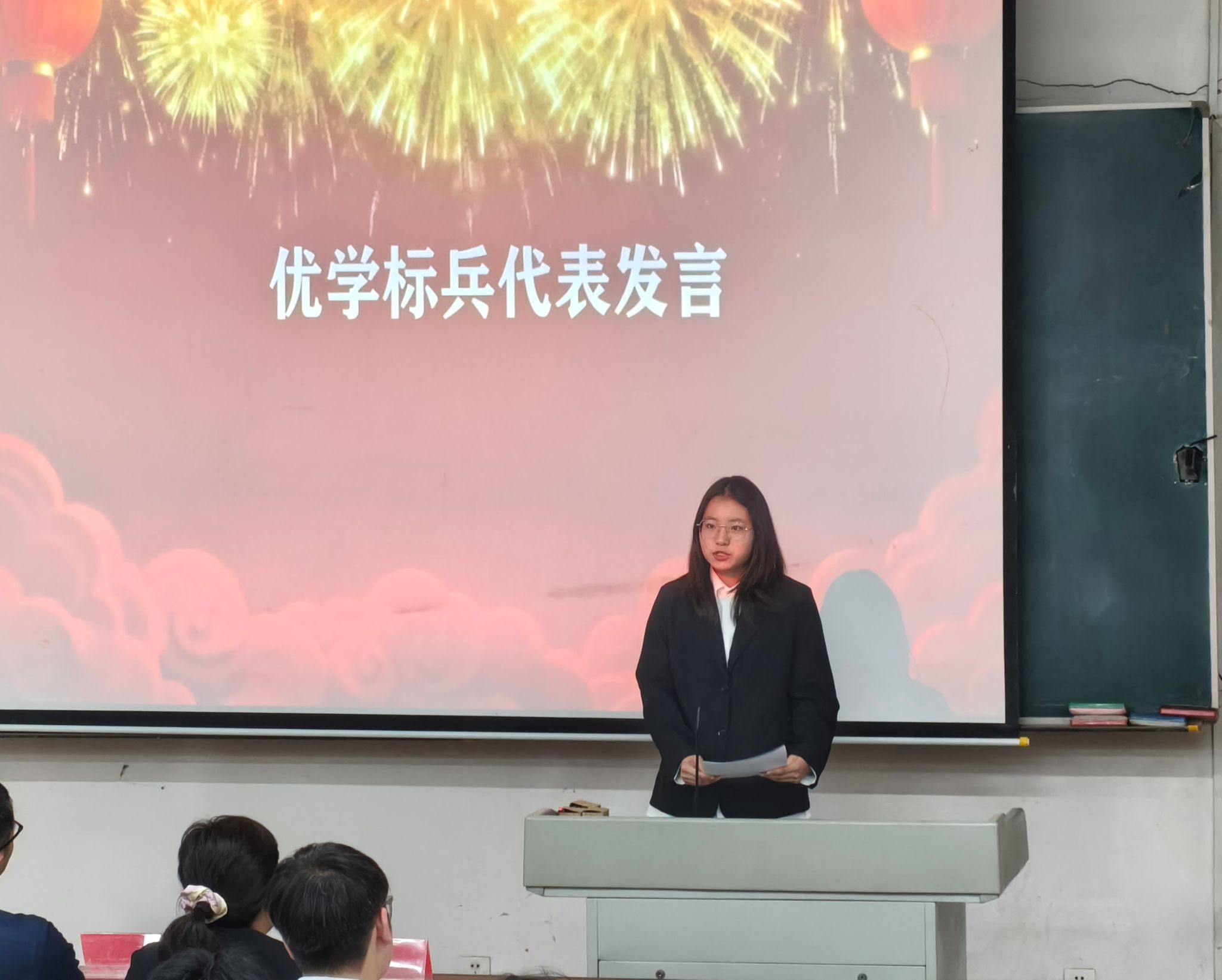 随后,教师代表和员工代表依次发言,徐健辉老师在发言中提出:希望大家在学习中互帮互助、主动交流,遇到学业难题可随时与老师沟通,以“共学共进”的氛围凝聚学风建设合力;优秀员工代表则结合“绩点提升”“学科竞赛”“互助学习”等实践,分享了“优学+乐学+勤学”的成长路径。