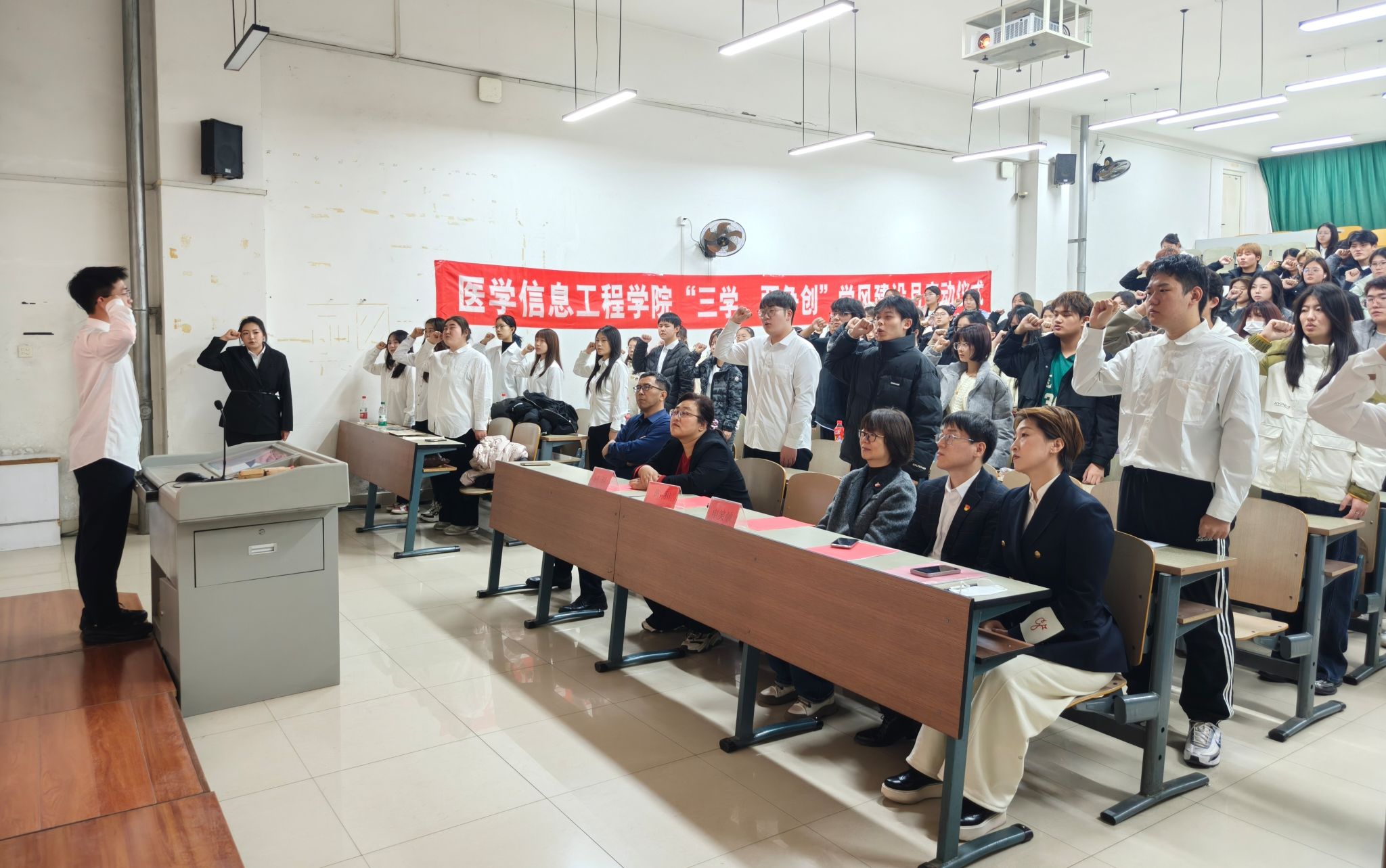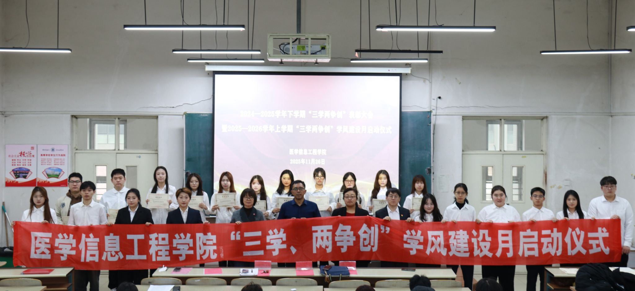 11月26日下午,taptap点点体育2024-2025学年下学期“三学两争创”表彰大会暨2025-2026学年上学期学风建设月启动仪式,在二教A座阶梯教室隆重举行。公司经理黄和、副经理申笑颜、任玥及辅导员史晓菲、徐健辉出席会议,部分员工代表及2025级全体员工共200余人参加。